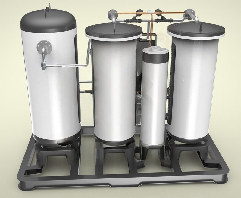 Η διαδικασία προσρόφησης ταλάντευσης πίεσης (άζωτο PSA) περιλαμβάνει από 2 σκάφη που γεμίζουν με τον άνθρακα μοριακό